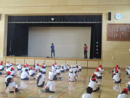 毎日のように体育があって、運動会の練習をします。今日は表現の練習をしました。早い音楽に体がまだ慣れていませんが、少しずつ速いリズムに合わせて体が動くようになりました。