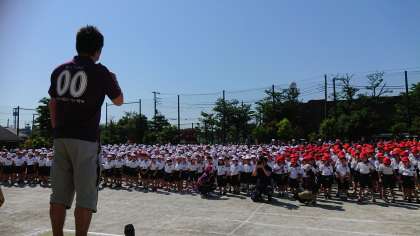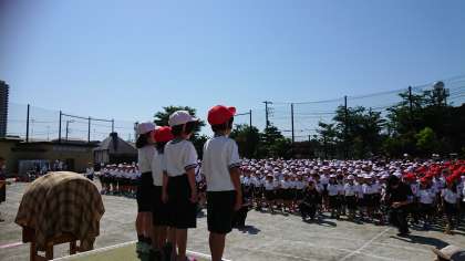 雲ひとつ無い晴天のもと、運動会が始まりました。みんな、やる気にみなぎっています。児童の練習の成果をご覧下さい。