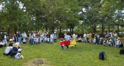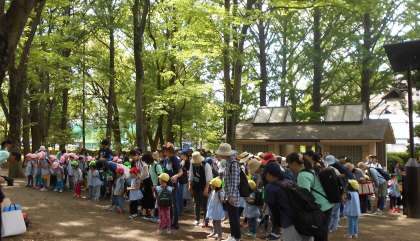 蘆花公園で親子遠足がありました。季節の花が咲き乱れる花の丘で記念写真をパチリ。年長組は広い園内で自然探検を、年少組は親子でゲームを楽しみました。皆でおしゃべりをしながらのお弁当タイムも、楽しかったですね。天気にも恵まれ、笑顔いっぱいの一日になりました。保護者の皆様、お疲れ様でした!