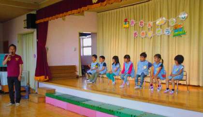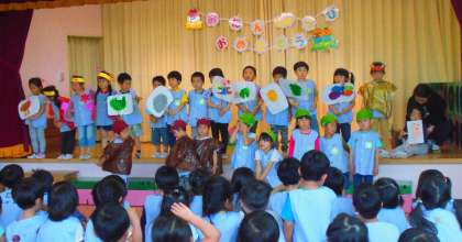 5月22日(水)<誕生会> 公開日 2019/06/04 更新日 2019/06/04 給田幼稚園 5月生まれの誕生児をお祝いしました。お楽しみはたけ組の出し物「給田幼稚園の劇」でした。幼稚園の園庭にいる色々な虫や生き物が登場する楽しい劇に、年少児もびっくり。力を合わせて発表したたけ組さんに、拍手! いいね(0)