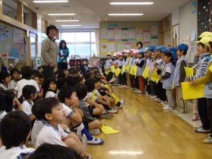 給田幼稚園の子と学校探検をしました。校長室や保健室等、幼稚園の子に説明しながら学校を探検しました。すっかりお兄さんお姉さんになった1年生が頼もしくみえました。