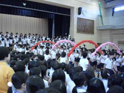 もうすぐ卒業をする6年生をお祝いし、今まで下級生や学校のために働いてくれたことへの感謝の気持ちを届けるために、6年生を送る会が開かれました。