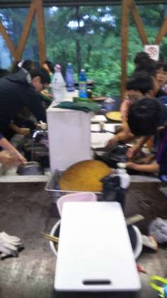 今夕飯の片付けが終わりました。これからクラス毎に入浴となります。
