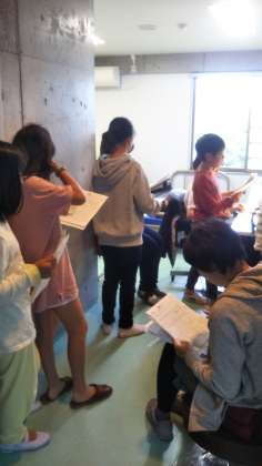 天気は曇りですが、予定通り山登りに行きます。写真は朝の健康観察、朝の集い、朝食の様子です。睡眠不足気味な子供もいますが、朝食のお代わりをするなど元気です。