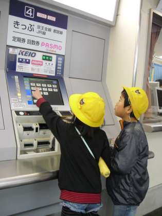 生活科で、自分たちの力で切符を買い、電車に乗って、地図を見ながら蘆花公園まで歩いて行く学習を行いました。電車に乗ることはよくあるけれど、自分で切符を買うのは初めての子もたくさん。「お金を入れて、ボタンを押して…あ、きっぷが出た!」「この電車でいいのかな?」どきどきしながらも、班の仲間と力を合わせて、2年生全員が無事目的地まで辿り着くことができました。