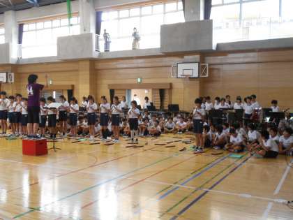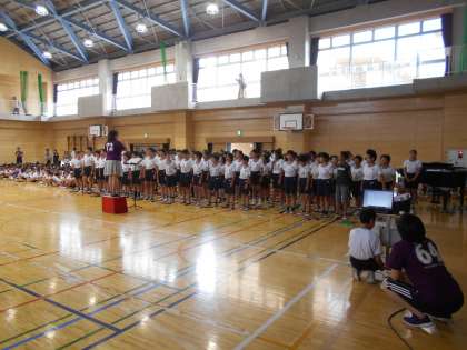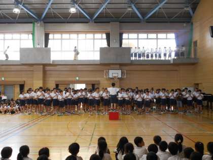 ・本日の音楽朝会は6年生による合唱・合奏でした。さすが6年生です。どのクラスも素晴らしい演奏でした。1年〜5年の児童は真剣に聴いていました。