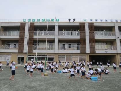 1年 水遊び 公開日 2019/07/13 更新日 2019/07/13 1年 7月13日、1年生は生活科の学習で水遊びをしました。 洗剤のケースやケチャップのケース、穴をあけたペットボトルなど、身近な道具を工夫して仲良く遊びました。 いいね(0)