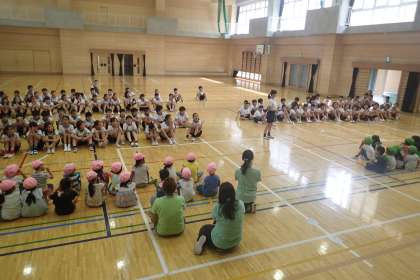 幼小ソーラン節交流がありました!! 公開日 2019/09/24 更新日 2019/09/24 5年 運動会で一生懸命練習したソーラン節を幼稚園生に教える授業を行いました。 一生懸命教えている姿には、来年にはいい6年生になれるんじゃないかという期待をもつことができました!!来年が楽しみです!! いいね(0)