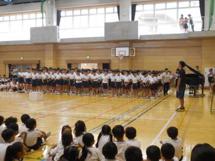 5年生による音楽朝会がありました。担任も参加し気持ちのこもった朝会をすることができました。