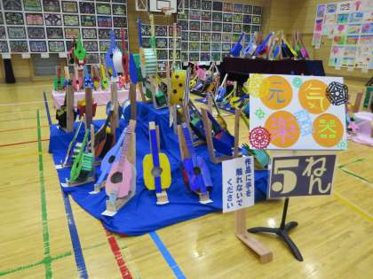 展覧会作品(5年) 公開日 2019/11/26 更新日 2019/11/26 5年 平面「春を感じて」 「令和の塔」 立体「元気楽器」 形と色が個性的な楽器が並んでいました。スタンドも、楽器に合わせて作りました。 いいね(0)