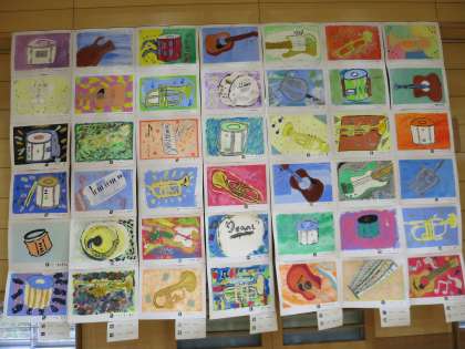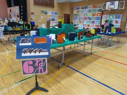 展覧会作品(6年) 公開日 2019/11/26 更新日 2019/11/26 6年 平面「墨のうた」 「つながる音色」 立体「私はデザイナー」 1枚の板がいろいろな「棚」に大変身。色彩塗装やニスでの仕上げも自分達で行いました。 いいね(0)