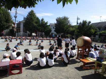 10月10日(木) <年長ソーラン交流> 公開日 2020/01/14 更新日 2020/01/14 給田幼稚園 もうすぐ運動会本番。給田小学校5年生の前で、今まで教えてもらった成果を力いっぱい発表しました。親子で染めたソーランTシャツを初めて着て、裸足になっての本番と同じいでたちで、少し緊張気味の年長児。踊り終え、たくさんの拍手をもらって嬉しそうでした。5年生の皆さん、交流ありがとうございました。 いいね(0)