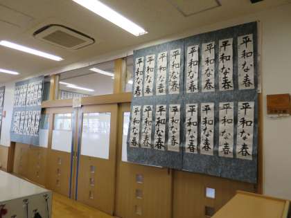 書き初め展 高学年 公開日 2020/01/16 更新日 2020/01/16 行事 1月11日から17日まで、校内書き初め展を行っています。 5・6年生は毛筆の作品です。 文字のバランスや筆の動きに気を付けて書きました。 力作が並んでいます。 いいね(0)