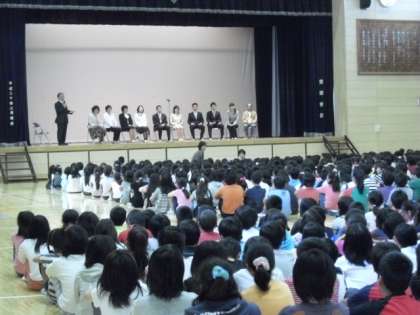 ご退職される先生や、他の学校へ移られる方々の離任式を行いました。