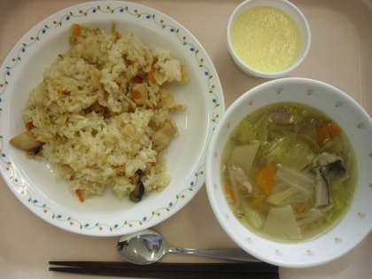 今日は、5月5日のこどもの日にちなんだ献立です。デザートは、給食室でつくった“てづくりプリン”です。写真では、わかりにくいですが、下にカラメルソースが入っています。てづくりならではの、ホッとする味のプリンでした。どのクラスも大人気で、教室からは、じゃんけん大会の声が聞こえてきました!