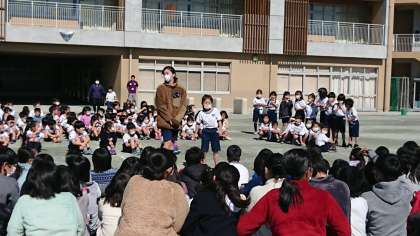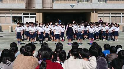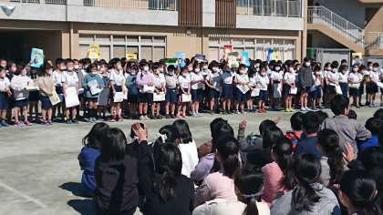 今年の六年生を送る会は、校庭で行われました。六年生に向けて、それぞれの学年が出し物を披露しました。工夫した出し物を見ながら、六年生の成長を感じると共に、卒業が間近に来ていると感じます。