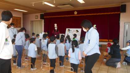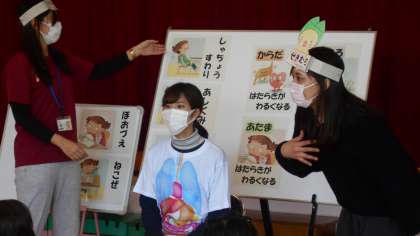 本日、養護教諭による幼稚園の授業が行われました。1年生に向けてのアプローチカリキュラムの一貫としての取り組みです。園児はとても真剣に聞いていました。4月からの1年生入学とても楽しみです。
