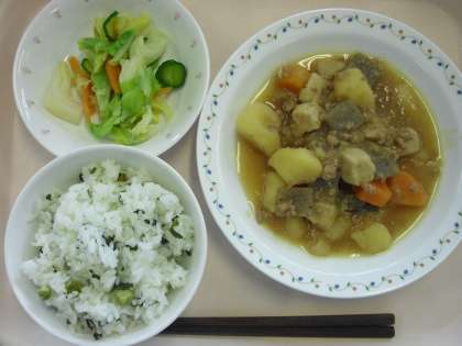 [2011年5月11日(水)] 給食「旬の味、グリンピースご飯」