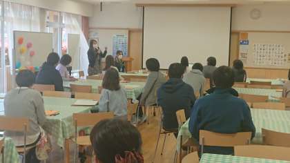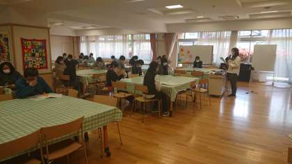 食物アレルギー対応校内研修会を行いました。幼稚園、小学校の教員が集まり、アナフィラキシーショックへの対応等を確認しました。養護教諭や栄養士からの説明を受け、ビデオ資料で学びました。