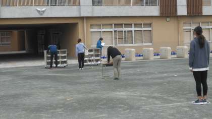 ・20日・21日に教科書を配布します。その時のイメージ(校庭配布の時)を写真で送ります。保護者間接触しないよう、できる限り配慮していきます。ご協力宜しくお願いします。