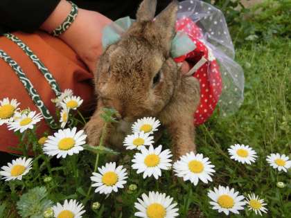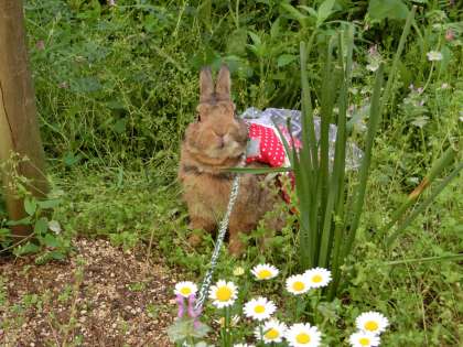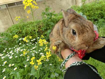 ラッキーは、校舎の西側にうさんぽに出かけました。