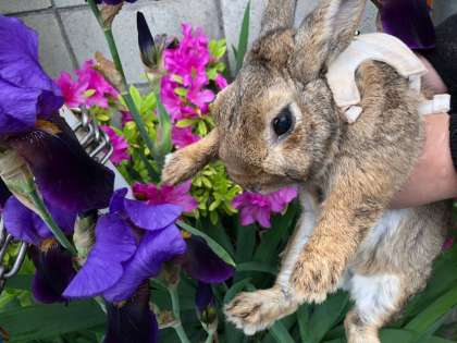 ラッキーは5月らしい菖蒲の花を発見しました!