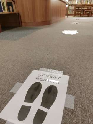 順番待ちで密集しないよう、立ち位置を示した掲示物を作成したり、