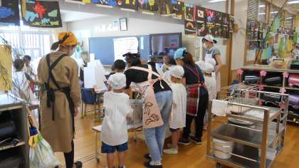 児童による給食配膳 公開日 2020/06/29 更新日 2020/06/29 行事 今日から、児童による給食の配膳となります。1年生は、保護者のボランティアと一緒に緊張しながら、配膳していました。 いいね(0)