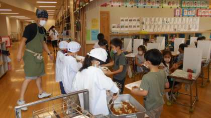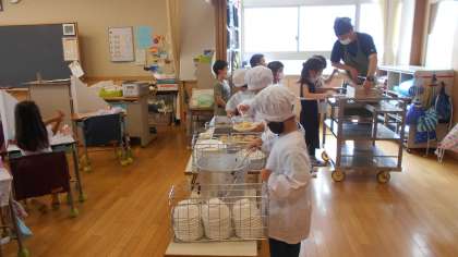 今日から、1年生は子ども達だけで給食の配膳をします。どのクラスも緊張しながら上手に配っていました。長い間、保護者のボランティアの方には、配膳の手伝いをしていただき本当にありがとうございました。感謝申しあげます。