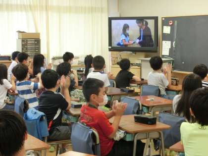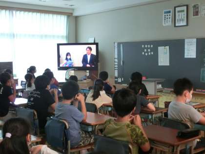 新型コロナウイルスの関係で、放送での離任式となりました。
