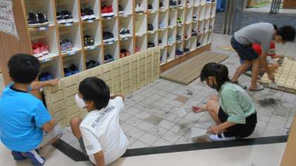 大そうじ 公開日 2020/07/31 更新日 2020/07/31 行事 今日は、1学期最後の日となりました。児童全員で、教室や下駄箱や廊下等の掃除をしました。1年生も頑張って取り組んでいました。元気な姿で2学期登校してほしいと思います。 いいね(0)