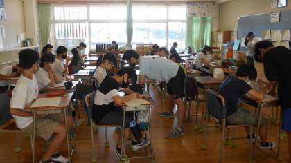 前半の補習授業が、今日で終了です。暑い中児童は元気に来て、学習していました。後半は、8月24日からです。9月の新学期に向けて、今後も規則正しい生活をしてほしいと思います。補習授業お疲れ様でした。