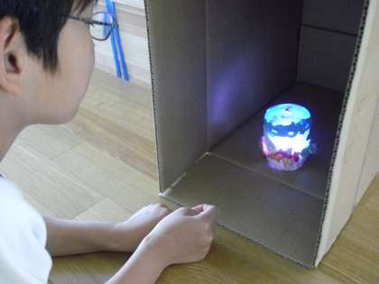 ペットボトルの中には色の変わるLEDライトが入っていて、美しく光ります!