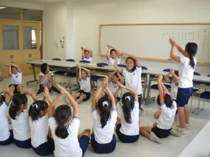 演劇クラブでは、はっきり台詞を言えるようにと早口言葉の特訓です。楽しく練習して上手になってくると、だんだん体も動いてきました。さて、みんなはどんな早口言葉を言っているのでしょうか・・・?