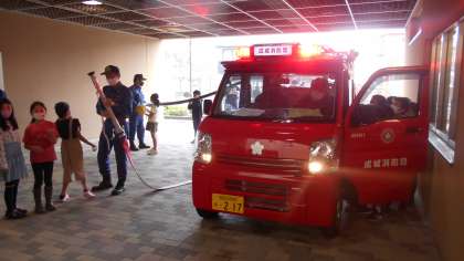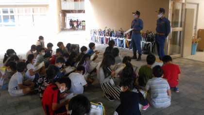 消防団による授業 公開日 2020/09/25 更新日 2020/09/25 3年 地域の消防団が来校して、3年生に「火事からくらしを守る」の授業をしてくれました。子供たちは、消防車を見てとても驚いていました。 いいね(0)