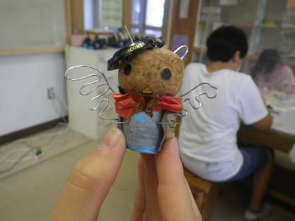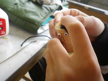 砂絵の次は「コルクのちびくん」というコルク人形作りをしています。コルクが小さいので苦戦している子もいますが、こちらも楽しそうに取り組んでいます。完成が楽しみです♪