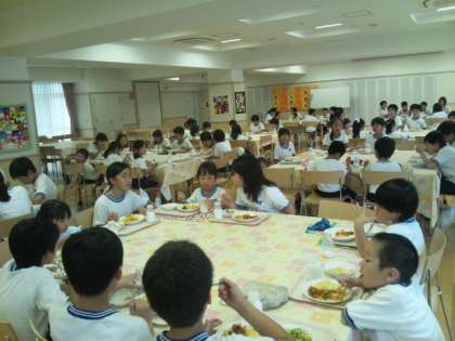 早く支度の終わった6年生が、1年生の手伝いをしてくれたり、「し〜ん」として食べることに集中する「もぐもぐタイム」を6年生もつきあってくれたり、ほほえましい場面が多かったです。6年生のみなさん、これからも1年生と仲良くしてあげてくださいね。