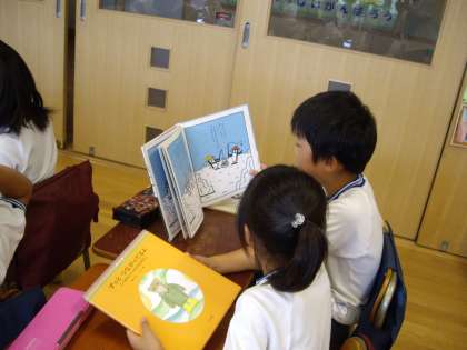 授業の最後子どもたちに、「夏休みには、いつもはお家の人が読んでくれている本を、今度は自分が読んでお家の人に聞かせてあげてね。」と話して終わりにしました。