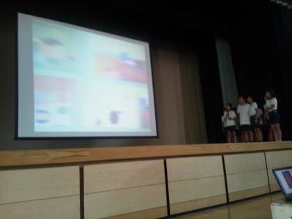 大きなスクリーンに映しながら、子どもたちが表情豊かに