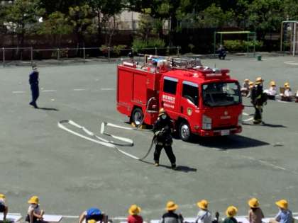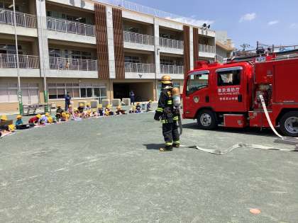 消防写生会 公開日 2021/05/06 更新日 2021/05/06 2年 昨日の雨も嘘のようにきれいな青空が広がりました。 成城消防署より、はしご車と隊員5名の方が来てくださいました。 「はたらく消防自動車」というコンテストに向けて、 みんな、いつもより大きな画用紙を使って大胆に描くことができました。 出来上がりが楽しみです。 いいね(0)