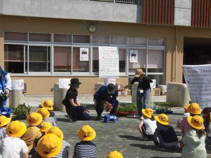 生活科「夏野菜をそだてよう」 公開日 2021/05/10 更新日 2021/05/10 2年 久しぶりの土曜授業でした。学校公開が中止となってしまいましたが、みんなで楽しく苗植えを行いました。農家の高橋さんに、野菜育てに一番大切なことは「見守り続けること」と教えていただきました。 これから野菜育てが始まります。大きく美味しく育つことが今から楽しみです。 いいね(0)