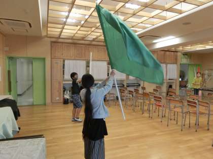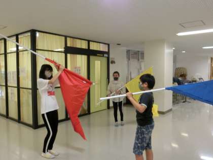 今年度から導入したフラッグは各クラスで振り付けを考えています。