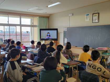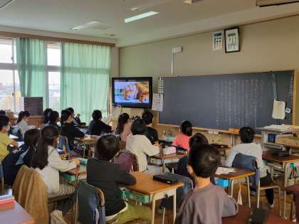 「ラッキー集会」と題して、給田小のアイドルうさぎラッキーの紹介や、