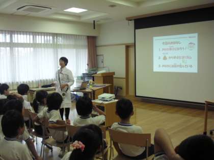 10月13日(木)学校公開初日にお腹の健康などについてヤクルトの方が来られて、授業をしていただきました。
