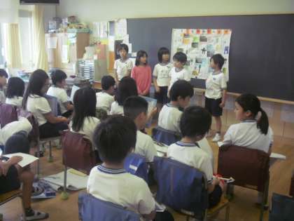 自分たちの住む地域で安全な場所・危険な場所について「見えづらい」「入りやすい」をキーワードにフィールドワークを行い、安全マップ作りをしました。そして25日(火)に学年の発表会をしました。一人一人が自分の役割の中で発表しました。