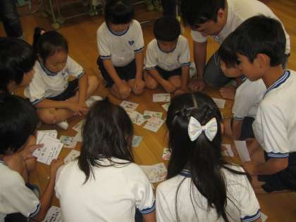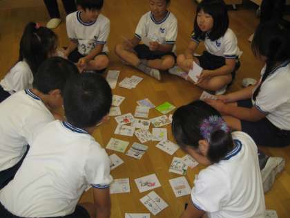 各班で司会が第一声を言ってから社会科見学で回った場所について詳しく伝え、カルタがスタートしました。2年生も楽しんで行い、最後の方には読み札を読んでいた3年生もカルタに参戦していました。