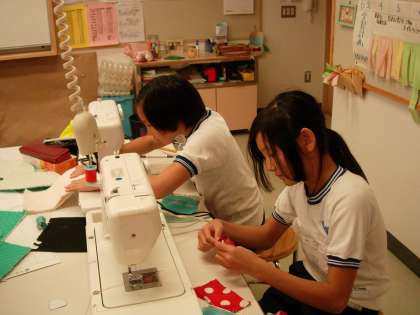 初めてのミシンを上手に使って、作品作りを楽しんでいます。「使いやすい物を作りたい。」「食事が楽しくなるような物を作りたい。」といったそれぞれの思いが作品の一つ一つに表れています。