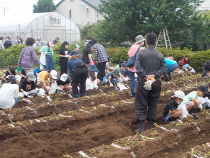 じゃがいも堀り 公開日 2022/06/18 更新日 2022/06/18 行事 ・本日、青少年烏山地区委員会主催のじゃがいも掘りが行われました。対象学年は、2,3年生です。約90名の児童が参加しました、大きなじゃがいもがとれて、とても驚いていました。 いいね(0)