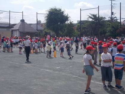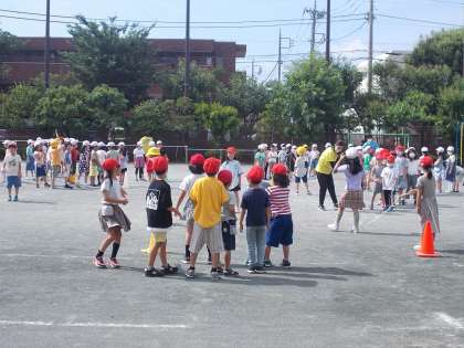 ・本日朝、1〜3年まで給田タイムの体つくりがありました。長縄に挑戦しました。暑い中、頑張りました。