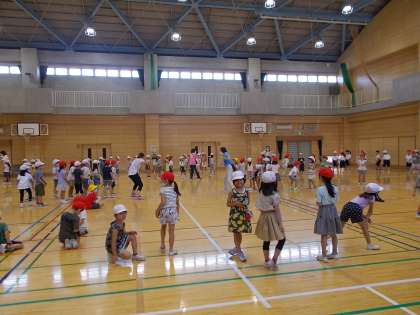 朝の給田タイムの時間、1年生が体育館で長縄の練習に取り組みました。とても楽しそうでした。